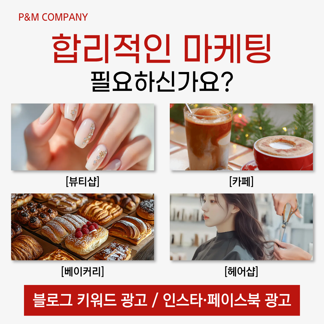 안녕하세요 P&M 컴퍼니입니다.고객은 업체를 방문하기 전겁색을 통해 정보를 확인하고,신뢰할 수 있는 콘텐츠를 본 뒤방문이나 문의를 고려합니다.그래서 요즘 마케팅은단순히 광고를 집행하는 것이 아니라어디에서, 어떤 방식으로 노출되느냐가 중요합니다.P&M은 업종 특성과 고객 행동 흐름에 맞춰블로그 키워드 광고와 메타 광고를 함께 제안합니다.■ 블로그 키워드 광고 블로그 키워드 광고...